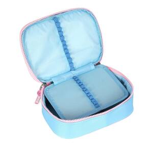 Estojo Box é super espaçoso e cabe todos os seus materiais de escrita. Ele é composto por uma divisória interna com elásticos para separar lápis, canetas e lapiseiras, e os demais materiais vão soltos no compartimento.