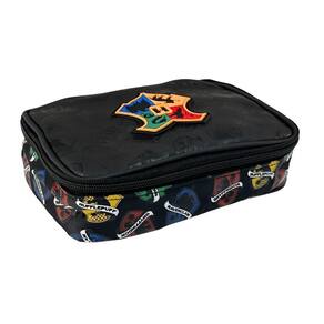 O estojo box oficial harry potter é confeccionado em material sintético com a logo em borracha, fechamento com zíper e puxadores personalizados Possui divisão com elásticos para prender diversos lápis e amplo espaço para mais lápis e materiais diversos.