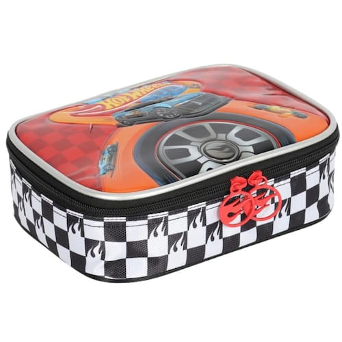 Para quem ama um carrinho e muita velocidade A linha Luxcel Made to Race da Hot Wheels vai animar a volta às aulas O estojo box oficial da Hot Wheels é confeccionado em material Jacquard com estampa xadrez, parte frontal em efeito metalizado, fechamento com zíper e puxadores personalizados Possui divisão com elásticos para prender diversos lápis e amplo espaço para mais lápis e materiais diversos.