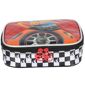 Para quem ama um carrinho e muita velocidade A linha Luxcel Made to Race da Hot Wheels vai animar a volta às aulas O estojo box oficial da Hot Wheels é confeccionado em material Jacquard com estampa xadrez, parte frontal em efeito metalizado, fechamento com zíper e puxadores personalizados Possui divisão com elásticos para prender diversos lápis e amplo espaço para mais lápis e materiais diversos.