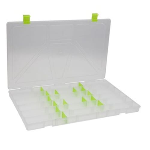 Especial para iscas artificiais, anzóis, chumbadas entre outros.É um estojo de alta qualidade e sofisticação, além de contar com paredes mais grossas, polivalente de distribuição de paletas internas que se adapta ao tamanho ideal das suas iscas e trava de fechamento.Especificações: - Fabricante: Rochel Pesca- Material: Polipropileno- Dimensões: 36 x 22 x 2,5cm- Possui divisórias removíveis (16un)- Peso 430g