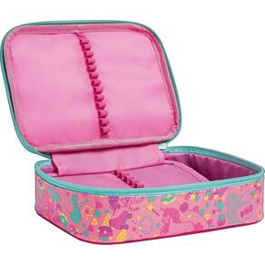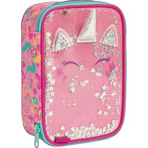 O Estojo Box Blink da Tilibra é incrivelmente prático e espaçoso, perfeito para quem precisa armazenar muitos lápis, canetas e outros materiais e acessórios. Este modelo tem a parte frontal feita de material plástico transparente e decorada com floquinhos prateados, criando um efeito visual mágico para o rosto do unicórnio. Com fechamento em zíper e uma divisória central com elásticos, o estojo ajuda na organização, garantindo que tudo esteja sempre em ordem e ao alcance das suas mãos.