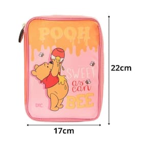 -divisórias internas para organização eficiente -fechamento com zíper, garantindo maior segurança para os materiais -design encantador com a estampa do Ursinho Pooh, ideal para fãs do personagem -perfeito para uso escolar, mas também pode ser utilizado para organizar itens de maquiagem, acessórios ou material de escritório