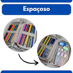 Amplo Espaço Interno e Organização Impecável: Diga adeus à bagunça! Com um design inteligente que permite abertura total (180 graus), o estojo possui múltiplos compartimentos para otimizar o armazenamento. Conta com: