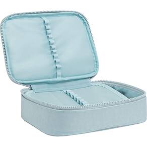 O Estojo Box Happy Azul é prático, espaçoso e ideal para quem tem muitos lápis, canetas, outros materiais e acessórios.
