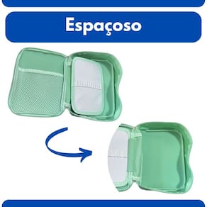 Compacto por fora e espaçoso por dentro: cabe na mochila, bolsa ou maleta sem ficar volumoso.