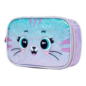Contém: 01 un - estojo box pack me cat brilhosa lilás escolar.