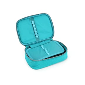 Estojo em poliéster para um total de 100 Lápis/Canetas/Canetinhas, não incluídos.Possui dois compartimentos separados, e elásticos fixos para até 20 Lápis/Canetas/Canetinhas. Os demais devem ser armazenados no compartimento inferior, sem elásticos.Dimensões aproximadas: 15cm x 21cm x 5cm (Largura x Profundidade x Altura)