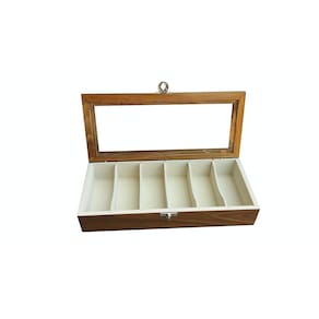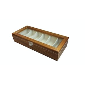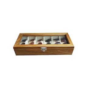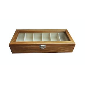 Prático e luxuoso, na linha madeira maciça encontrarmos um toque vintage, objeto decorativo onde são visíveis os veios naturais da madeira. Nossos estojos irão facilitar seu dia a dia com a organização e segurança que sua coleção precisa, além de proporcionar um ambiente mais sofisticado e elegante. Produzida com madeira natural de reflorestamento. Escolhida rigorosamente, tratada com fungicidas e anti-cupins. Envernizada externamente com verniz poliuretano industrial. Internamente as laterais e divisórias são revestidas com nylon aveludado. E as almofadas que acompanham o produto, normalmente são também em tecido aveludado. Na linha madeira maciça é possível observar os veios naturais da madeira. As dobradiças não são aparentes e possuem um limitador. A tampa possui visor com vidro transparente. Acompanha um fecho giratório de pressão em metal, ideal para colocar cadeado. Seus relógios sempre bem protegidos e acomodados confortavelmente, com toda segurança e facilidade no manuseio. Características das caixas para relógio:- Produto fabricado em madeira maciça de qualidade- Padrão cor Cerejeira/Ébano/Tabaco- Não empena, não trinca, não racha- Revestimento interno aveludado, inclusive as divisórias- Fecho giratório de pressão em metal (suporta cadeado)- Tampa de vidro 2 milímetros- Acompanha almofadas para todos os casulos- Medidas aproximadas dos casulos (larg x comp x alt): 7,5 x 7,5 x 7,5 cm Relógios não acompanham o estojo - Imagens meramente ilustrativas