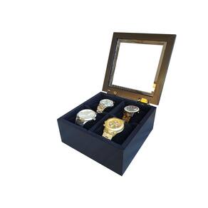Prático e luxuoso, na linha madeira maciça. Nossos estojos irão facilitar seu dia a dia com a organização e segurança que sua coleção precisa, além de proporcionar um ambiente mais sofisticado e elegante. Produzida com madeira natural de reflorestamento. Escolhida rigorosamente, totalmente tratada, tingida e envernizada externamente. Internamente, inclusive as divisórias são revestidas com nylon aveludado e as almofadas que acompanham o produto, normalmente são também em tecido aveludado. Na linha madeira maciça é possível observar os veios naturais da madeira. As dobradiças não são aparentes e possuem um limitador. A tampa possui visor com vidro transparente. Seus relógios sempre bem protegidos e acomodados confortavelmente, com toda segurança e facilidade no manuseio. Características das caixas para relógio: Produto fabricado em madeira maciça de qualidade; Laqueado de Preto; Não empena; Revestimento interno aveludado, inclusive as divisórias; Tampa de vidro 2 mm; Acompanha almofadas para todos os casulos Medidas aproximadas dos casulos larg x comp x alt : 7,5 x 7,5 x 7,0 cm. Relógios não acompanham o estojo Imagens meramente ilustrativas