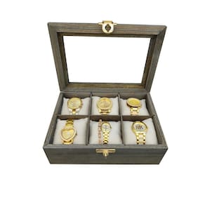 Prático e luxuoso, na linha madeira maciça encontrarmos um toque vintage, objeto decorativo onde são visíveis os veios naturais da madeira. Nossos estojos irão facilitar seu dia a dia com a organização e segurança que sua coleção precisa, além de proporcionar um ambiente mais sofisticado e elegante. Produzida com madeira natural de reflorestamento. Escolhida rigorosamente, tratada com fungicidas e anti-cupins. Envernizada externamente com verniz poliuretano industrial. Internamente as laterais e divisórias são revestidas com nylon aveludado. E as almofadas que acompanham o produto, normalmente são também em tecido aveludado. Na linha madeira maciça é possível observar os veios naturais da madeira. As dobradiças não são aparentes e possuem um limitador. A tampa possui visor com vidro transparente. Acompanha um fecho giratório de pressão em metal, ideal para colocar cadeado. Seus relógios sempre bem protegidos e acomodados confortavelmente, com toda segurança e facilidade no