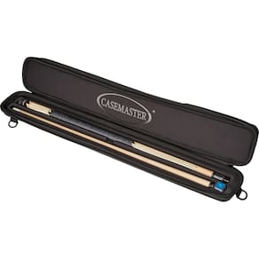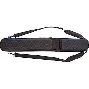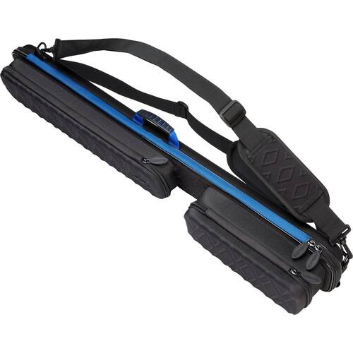 Capa Casemaster Parallax Diamond para bilhar/taco de sinuca 600D, tecido de poliéster pesado, interior acolchoado e dois bolsos para acessórios, comporta 1 taco completo de 2 peças (1 coronha/1 eixo), preta com acabamento azul
