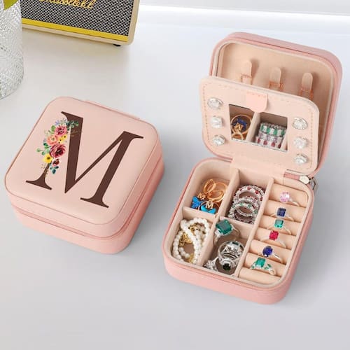 Material: Feito de couro PU, que traz uma sensação macia e luxuosa. O forro macio ajuda a proteger suas joias de arranhões e danos. É clássico e moderno com zíper de alta qualidade. O design mini facilita o transporte em sua bolsa ou bagagem, adequado para viagens, viagens de negócios ou uso diário. ? Características: Cor: azul, rosa, branco, verde, preto, roxo Pequeno e compacto. ? Caixa de joias com inicial incluída: A capa leve e compacta vem com 7 rolos e 4 divisões retangulares que podem ser removidas, o que facilita o armazenamento de itens. Adicione 6 compartimentos para brincos, 3 ganchos de colar e 1 mini espelho de penteadeira. ? Presentes perfeitos: Esta linda caixa de joias é a proposta perfeita ou presente de agradecimento para qualquer dama de honra, dama de honra ou florista. - ?Inicial de flor e presente personalizado?: Esta caixa de joias com inicial exclusiva é o presente perfeito para você e ela! Encha com suas joias favoritas para um presente que ela vai adorar. Que é um presente perfeito para mãe, filha, amigas, irmã, dama de honra, noiva, esposa, namorada, professora... Adicione um toque especial personalizando-o com seu monograma para um presente pelo qual ela vai se apaixonar instantaneamente. - ?Materiais de alta qualidade?: A caixa de joias é feita de couro PU à prova d'água, resistente e durável. O forro da caixa de joias é feito de veludo macio de alta qualidade e evita que suas joias arranhem. Vem com um compartimento secreto para brincos e um espelho compacto embutido. - ?Chega de nós irritantes?: o zíper mantém todas as suas joias seguras por dentro e os bolsos internos e divisórias mantêm tudo limpo e organizado sem ficar emaranhados. A capa leve e compacta vem com 7 rolos e 4 compartimentos divididos que podem ser removidos e facilitam o armazenamento de mais itens. Adicione 6 compartimentos para brincos, 3 ganchos de colar e 1 mini espelho de penteadeira. - ?CAIXA DE JÓIAS DE VIAGEM PORTÁTIL?: A caixa de armazenamento multifuncional de joias de viagem com espelho pode armazenar todos os tipos de joias em diferentes áreas. A caixa de joias de tamanho perfeito enche-a com seu colar, brincos, anéis... e é fácil de encontrar. Presentes de viagem perfeitos, você pode levá-lo facilmente e desfrutar de uma maravilhosa viagem de viagem ou férias. - ?Serviço pós-venda?: Estamos comprometidos em fornecer aos nossos clientes um serviço satisfatório.