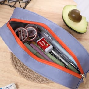 Material: tela Peso: 88 g Tamanho: 24,5 cm* 7 cm* 11 cm Design moderno: com um design chique em laranja e bege, este estojo de lápis traz um toque sofisticado e divertido ao seu material escolar. Grande capacidade: com amplo espaço e vários compartimentos, ele armazena facilmente canetas, lápis, borrachas e outros pequenos itens essenciais para escolas, mantendo tudo organizado. Material de lona durável: feito de lona de alta qualidade, este estojo de lápis foi construído para suportar o uso diário, permanecendo leve e fácil de limpar. Multifuncional: este estojo de lápis versátil pode conter mais do que apenas papel de carta — use-o também para organizar pequenos acessórios ou maquiagem. Perfeito para estudantes: ideal para estudantes do ensino fundamental, médio e universitário, este estojo de lápis combina estilo e praticidade para organizar o material escolar.