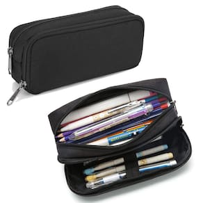 Material e acessórios de alta qualidade: O estojo de lápis preto é feito de material de náilon leve e durável, é resistente à água, resistente a rasgos e lavável. Mas você não pode colocá-lo na água, porque o zíper não é à prova d'água. O extrator de zíper de metal da marca e o zíper liso oferecem maior vida útil. (Atenção:Somente estojo, lápis não incluídos)