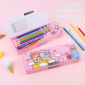 Estojo multifuncional LilyBeauty Pop Up para meninas e meninos, lindo organizador de caixas de canetas de desenho animado, papelaria com apontador, agenda, material escolar, os melhores presentes de aniversário para crianças?Pink-Dream Planet?