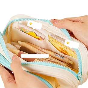 Material: tecido Oxford Peso: 200 g Tamanho: 6,5* 23* 11 cm Design exclusivo e adorável: este estojo de lápis apresenta um design divertido de pão com detalhes vibrantes em amarelo e turquesa, tornando-o um acessório atraente para estudantes. Espaçoso e funcional: com amplo espaço, este estojo é perfeito para guardar canetas, lápis, borrachas e outros itens de papelaria, mantendo tudo organizado. Durável e leve: feita de tecido Oxford de alta qualidade, esta bolsa para lápis é durável e leve, garantindo que resista ao uso diário. Conveniente e portátil: o estojo de lápis é equipado com uma alça prática para facilitar o transporte, tornando-o ideal para estudantes em trânsito. Perfeito para uso escolar e diário: ótimo para estudantes de todas as idades, este estojo de lápis oferece estilo e praticidade para uso escolar, no escritório ou pessoal.