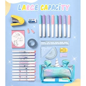 Estojo de lápis LISEVO Cute Unicorn, bolsa de lápis 3D para meninas e crianças, bolsa de lápis brilhante com lantejoulas para estudantes, porta-canetas estacionário Glitter Bling School Supplies, azul