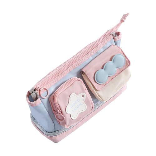 Material: Peso do tecido: 98 g Tamanho: 220* 85* 115 mm Design de grande capacidade: este estojo possui amplo espaço para guardar canetas, lápis, borrachas e muito mais, mantendo todos os seus itens de papelaria organizados e fáceis de acessar. Design multicolorido elegante: com uma combinação única de tons de rosa e azul, este estojo de lápis tem uma estética moderna, tornando-o uma ótima opção para estudantes e funcionários de escritório. Durável e portátil: feita de tecido de alta qualidade, esta capa é leve, durável e fácil de transportar com seu design prático de alça. Vários compartimentos: inclui várias seções para organizar suas ferramentas de escrita, mantendo tudo no lugar e evitando a desordem. Perfeito para estudantes e adolescentes: ideal para estudantes do ensino fundamental, médio e universitário, este estojo de lápis combina estilo e funcionalidade para o uso diário.