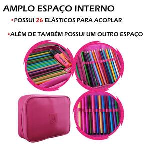 Amplo espaço interno: Possui 1 divisória que te entrega 3 opções para colocar os itens, sendo 2 lugares somando 26 elásticos e 1 outro espaço para itens soltos.