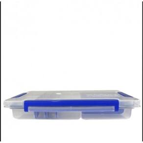 Estojo Marine Sports Ms-405 Estojo multiuso Marine Sports Ms 405 é feito em plástico transparente, possuí 3 compartimentos e 26 divisórias removíveis extras, para novas configurações dos tamanhos das divisões em até 29 compartimentos. Tampa com três trava, sistema de vedação com borracha por toda a extensão da tampa não permitindo a entrada de água. Ideal para armazenamento de iscas, anzóis, chumbadas, miudezas em geral.