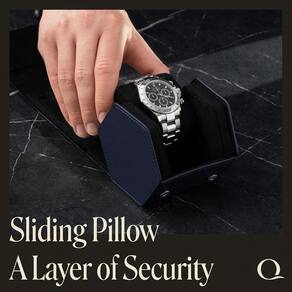 O design hexadecimal mantém os relógios seguros — os porta-relógios individuais da Hexagon oferecem estabilidade superior, mantendo seus relógios no lugar certo. A tampa desdobrável fica plana para que você possa trocar os relógios com segurança sem danos