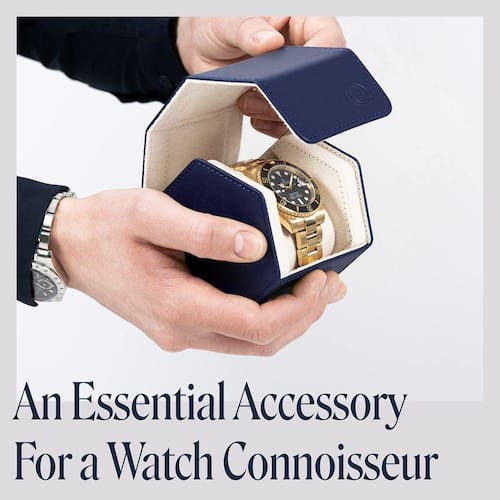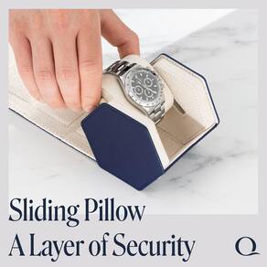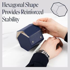 O design hexadecimal mantém os relógios seguros — os porta-relógios individuais da Hexagon oferecem estabilidade superior, mantendo seus relógios no lugar certo. A tampa desdobrável fica plana para que você possa trocar os relógios com segurança sem danos