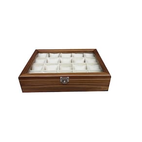 O Estojo/Caixa para 20 Relógios - Cerejeira flocado de Bege é um item prático e luxuoso que vai proporcionar organização e segurança para a sua coleção de relógios. Produzido em madeira maciça de qualidade, esse estojo possui um toque vintage, com veios naturais da madeira visíveis, o que o torna também um objeto decorativo elegante.