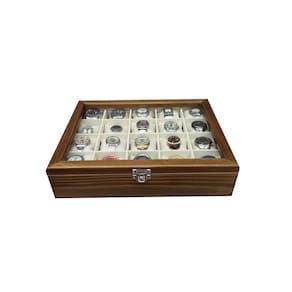 Esse estojo acompanha um fecho giratório de pressão em metal, ideal para colocar um cadeado e garantir a segurança dos seus relógios. As medidas aproximadas dos casulos são de 7,5 x 7,5 x 7,5 cm, garantindo que cada relógio fique bem protegido e acomodado confortavelmente.