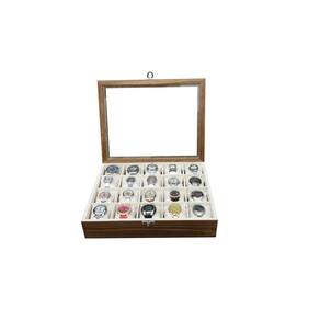 As dobradiças desse estojo não são aparentes e possuem um limitador, o que facilita o manuseio e evita acidentes. A tampa possui um visor com vidro transparente, permitindo que você visualize os relógios sem precisar abrir o estojo.