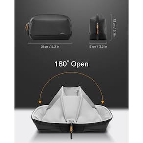 Com material de alta qualidade, design elegante, layout compacto e ampla capacidade, a mini bolsa multiuso Inateck pode armazenar seus eletrônicos, suprimentos diários ou cosméticos, esteja você em casa ou viajando. Alça superior A alça superior torna a bolsa muito mais portátil, que pode ser transportada e pendurada em qualquer lugar. Armazenamento organizado Existem 2 laços para caneta, 5 compartimentos para cartão SD e vários bolsos na mini bolsa para manter todos os seus acessórios organizados. Bolso com zíper. Este bolso oferece aos seus pertences como passaporte e cartões bancários uma sala de armazenamento separada. Zíperes YKK Zíperes YKK duplos de qualidade e puxadores de zíper duráveis garantem um deslizamento suave e não ficarão pegajosos e arenosos com o tempo. - Delicado e durável: o exterior da bolsa com alça é feito de poliéster 1200D para evitar respingos. A camada interna adota lycra macia para proteger os itens de colisão e atrito. O zíper YKK duplo é mais fácil e suave. Você pode usá-lo como bolsa de tecnologia, organizador de eletrônicos, estojo de viagem, estojo de transporte de acessórios eletrônicos, organizador de tecnologia, etc. - Abertura de 180°: o interior é em estilo origami, o que permite que você abra a bolsa 180° para levar o que você precisa. Vários bolsos e elásticos na bolsa ajudam a organizar os acessórios de maneira ordenada e a manter os itens no lugar para evitar escorregões. - Armazenamento ordenado: Existem vários compartimentos para armazenar seu carregador, disco rígido, carregador portátil, mouse, fones de ouvido, cabos USB, notebooks, cartões de jogo, etc. Além disso, existem 2 passadores de caneta e 5 compartimentos para cartão SD. Perfeito para quem procura organizador de tecnologia de viagem, organizador de armazenamento de tecnologia, acessórios eletrônicos de bolsa de viagem, organizador de fios de viagem, organizador de cabos técnicos, bolsa organizadora eletrônica, etc. - Fácil de transportar: Dimensões do produto: 21 x 8 x 13 cm. Esta mini bolsa de eletrônicos pode ser facilmente guardada em uma mala, pasta ou mochila. A alça superior permite que você carregue ou pendure em qualquer lugar. Use como organizador de capa técnica, organizador de bolsas de tecnologia, organizador de cabos eletrônicos de viagem, organizador de viagem técnica, bolsa de tecnologia, etc. - Zíperes YKK duplos: zíperes YKK duplos de qualidade e puxadores de zíper duráveis garantem um deslizamento suave e não ficarão pegajosos e arenosos com o tempo. Pode ser utilizado como estojo de viagem organizador de eletrônicos, bolsa de tecnologia, bolsa organizadora de viagem, estojo de transporte de acessórios eletrônicos, organizador de tecnologia para cabo, cabo, carregador, telefone.