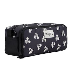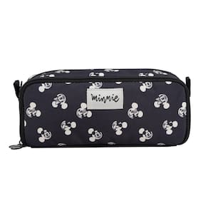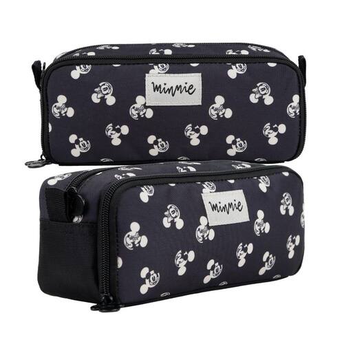 Confeccionado em poliéster resistente e estampado com detalhes exclusivos Minnie Mouse. O Estojo possui dois compartimentos, sendo um frontal com divisória e um principal amplo, ambos com fechamento em zíper com puxadores personalizados