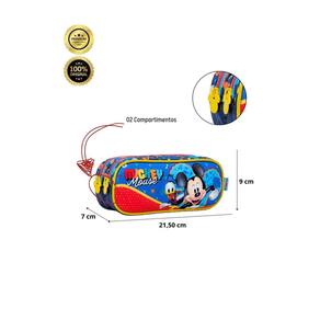 Design exclusivo: Estampa do Mickey Mouse com detalhes encantadores. Dois compartimentos: Espaço amplo para organizar lápis de cor, canetas, borrachas e outros materiais. Fechamento por zíper: Facilita o acesso aos compartimentos. Cursor personalizado: Um toque especial que os meninos vão adorar. Material resistente: Garante durabilidade e resistência no dia a dia escolar.