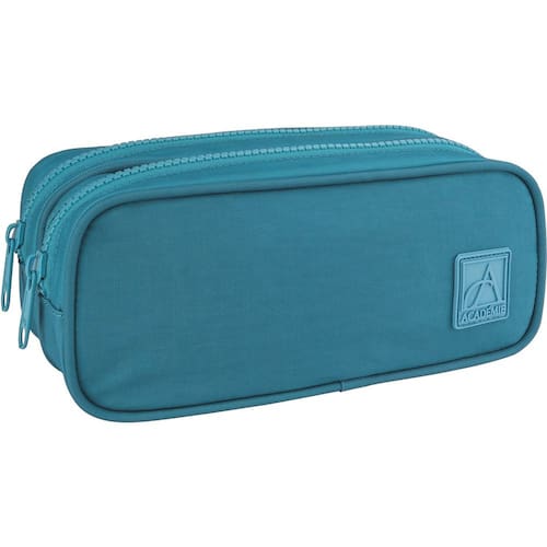 O Estojo Duplo Grande Académie Turquesa é prático, espaçoso e ideal para quem possui muitos lápis, canetas e outros materiais e acessórios. Além de facilitar seu dia a dia na escola, esse estojo possui material resistente, dois compartimentos que auxiliam na organização do material e fechamento em zíper. Características técnicas Compartimento: dois Detalhe: aplique emborrachado Fechamento: em zíper Formato: 200mm x 90mm Material: nylon Puxador: em metal : contra defeitos de fabricação.