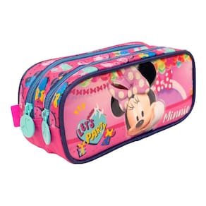 Estojo Duplo Minnie R 10565 Xeryus: - Produzido em poliéster resistente e lavável e vivos metálicos; - Painel frontal em PVC cristal com relevo; - Compartimentos espaçosos, perfeitos para ajudar na organização dos objetos; - Zíperes com puxadores personalizados.