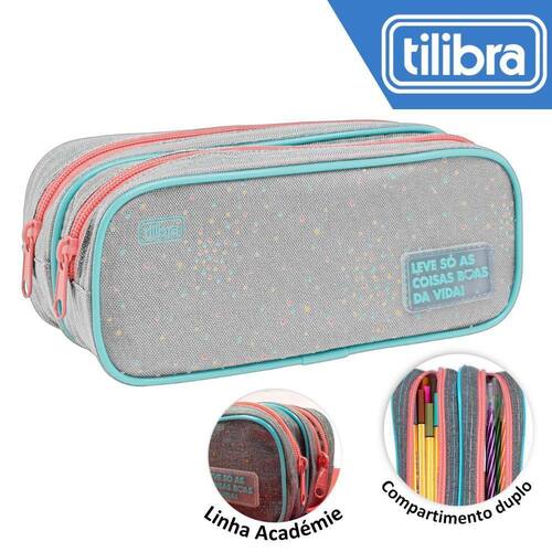 Fabricado pela renomada marca Tilibra, o Estojo Duplo Académie Dots possui um design moderno e elegante. Sua cor cinza com bolinhas coloridas traz um toque de estilo e diversão ao seu dia a dia.