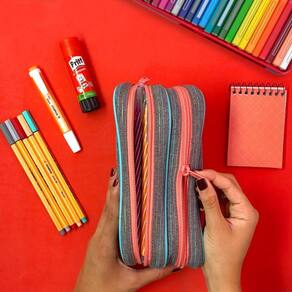 O fechamento em zíper e o puxador em metal proporcionam maior segurança e facilidade de uso. Você poderá levar seu estojo para a escola, viagens ou qualquer lugar que precisar, sem se preocupar com a perda ou danos aos seus materiais.