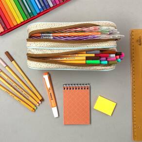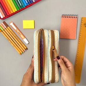 Estojo Duplo Tilibra Escolar Juvenil Académie Sunshine O Estojo Duplo Grande Académie Sunshine é prático e espaçoso, ideal para quem possui muitos lápis, canetas, outros materiais e acessórios. Além de facilitar seu dia a dia na escola, esse estojo possui material resistente com dois compartimentos que auxiliam na organização do seus itens.