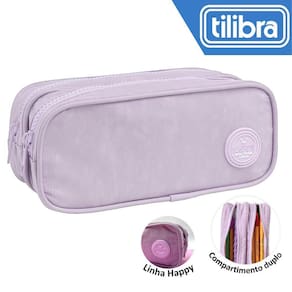 Fabricado pela marca Tilibra, referência em produtos escolares, o Estojo Duplo Tilibra Escolar Juvenil Grande Happy tem detalhes em aplique emborrachado, conferindo um toque especial ao produto. Disponível na cor Lilás, ele combina estilo e funcionalidade.