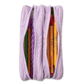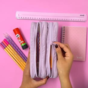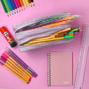 Este estojo possui dois compartimentos, o que facilita a organização dos seus materiais. Além disso, conta com fechamento em zíper, garantindo a segurança dos seus itens. O puxador em metal proporciona maior durabilidade e facilidade no manuseio.