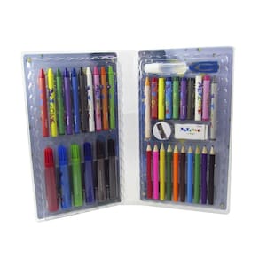 ESTOJO ESCOLAR 48 PECAS TRANSPARENTE ESTAMPAS DIVERSAS - MT48T.