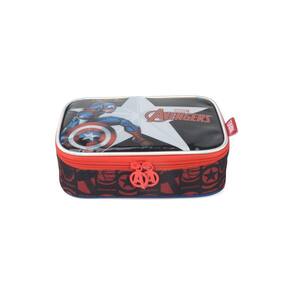 Estojo Escolar Box 100 Lápis Capitão América Avengers O estojo possui um compartimento principal com fecho a zíper, sendo o interior em cor predominantemente azul. Dentro da cavidade, você encontrará espaço suficiente para até 100 lápis ou canetas, sendo uma parte deles nos elásticos disponíveis na aba divisória interna, e os demais soltos no compartimento. Você pode também levar outros materiais: borracha, apontador, transferidor, entre outras coisas. Medidas CxLxA : 15x21x6cm Material: poliéster Ean: 6931759225717