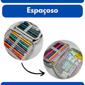 Capacidade: Até 24 lápis/canetas + diversos acessórios em bolsos.