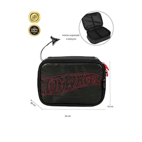 Confeccionado em Poliéster Fechamento em zíper Compartimento espaçoso Design exclusivo Medidas aproximadas: Altura: 15 cm Largura: 6 cm Comprimento: 21 cm CUIDADOS: - Guarde em um local seco e arejado evitando locais úmidos. - Evite colocar excesso de peso no produto para não forçar os zíperes e costuras. - Proteja os objetos cortantes e/ou pontiagudos evitando o contato direto com o produto. - Evitar altas temperaturas. - Cores claras poderão manchar quando em contato com outros objetos ou roupas de cores pigmentadas.