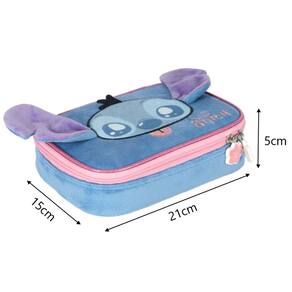 Estojo Escolar Box Stitch Disney Pelucia 3D Azul Luxcel