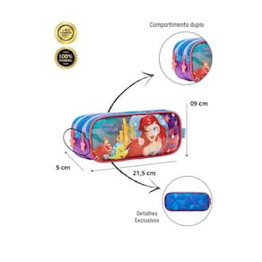 Estojo Ariel Duplo Mergulhe no mundo mágico da Ariel com esse estojo encantador O estojo duplo da Ariel é perfeito para as pequenas sereias que amam a Pequena Sereia. Com design exclusivo e prático, ele é ideal para organizar todos os materiais escolares e deixar a rotina mais divertida. Principais características: Design exclusivo: Estampa da Ariel com detalhes encantadores. Dois compartimentos: Ideal para separar lápis, canetas e outros materiais. Fechamento por zíper: Garante que nada se perca durante o transporte. Cursor personalizado: Um toque especial que as meninas vão adorar. Material resistente: Durabilidade para acompanhar o dia a dia escolar. Por que escolher esse estojo Estilo e funcionalidade: Combina o design encantador da Ariel com a praticidade de um estojo duplo. Organização: Os dois compartimentos facilitam a organização dos materiais. Durabilidade: Confeccionado com materiais de alta qualidade para durar por muito tempo. Perfeito para presente: Ideal para presentear as pequenas fãs da Ariel em qualquer ocasião. Ideal para: Meninas fãs da Ariel: Um presente perfeito para encantar as pequenas sereias. Dia a dia escolar: Organiza os materiais escolares com estilo e praticidade. Viagens e passeios: Ideal para transportar lápis, canetas e outros pequenos objetos. Medidas: