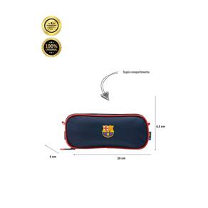 Características: Design exclusivo: Com o logo do Barcelona, este estojo vai deixar sua mochila ainda mais bonita. Dois compartimentos: Ideal para organizar seus materiais de forma prática e eficiente. Material resistente: Confeccionado com material de alta qualidade, garantindo durabilidade e resistência. Tamanho ideal: Perfeito para levar na mochila ou bolsa. Medidas aproximadas: Altura: Largura: Comprimento: CUIDADOS: -guarde em um local seco e arejado evitando locais úmidos. - Evite colocar excesso de peso no produto para não forçar os zíperes e costuras. - Proteja os objetos cortantes e/ou pontiagudos evitando o contato direto com o produto. - Evitar altas temperaturas. - Cores claras poderão manchar quando em contato com outros objetos ou roupas de cores pigmentadas.