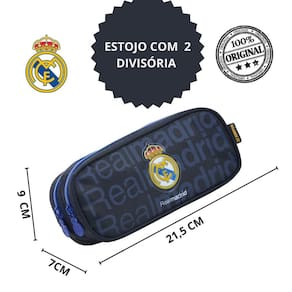 Cor: Azul Tamanho: único Genero: unissex Mantenha o material escolar sempre em ordem com o estojo duplo do Real Madrid Feito de poliéster durável, este estojo apresenta dois compartimentos espaçosos, ideais para acomodar todos os itens necessários para as atividades escolares. O escudo do time em PVC patch na frente garante um toque especial de orgulho Madridista. Perfeito para qualquer criança que quer demonstrar sua paixão pelo time madrilenho até nos detalhes
