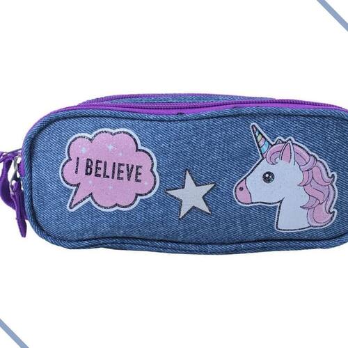 esse estojo é lindooooo, sua filha vai amar ele. Ele vem com unicórnio estampado no estojo que é super tendência há anos, vem com uma estrelinha que toda menina ama e além disso com a famosa frase i believe , tem 2 compartimentos para guardar os itens escolares tais como, lápis, lapiseira, borracha, canetinha, giz de cera, apontador, corretivo, etc. Bem espaçoso e lindo. Com esse aspecto de jeans super moderno e prático até para limpar sua filha vai amar ir para escola ou até mesmo estudar em casa. Produto certificado pelo inmetro. Fabricado pela clio recomendado para crianças a partir de 3 anos. Zíper personalizado com puxador diferenciado. Produto e com. Dimensões do estojo :