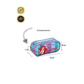 Estojo sereia Fundo do Mar 02 compartimentos Dimensões: 15 x 21 x6 cm CUIDADOS: - Guarde em um local seco e arejado evitando locais úmidos. - Evite colocar excesso de peso no produto para não forçar os zíperes e costuras. - Proteja os objetos cortantes e/ou pontiagudos evitando o contato direto com o produto. - Evitar altas temperaturas. - Cores claras poderão manchar quando em contato com outros objetos ou roupas de cores pigmentadas.
